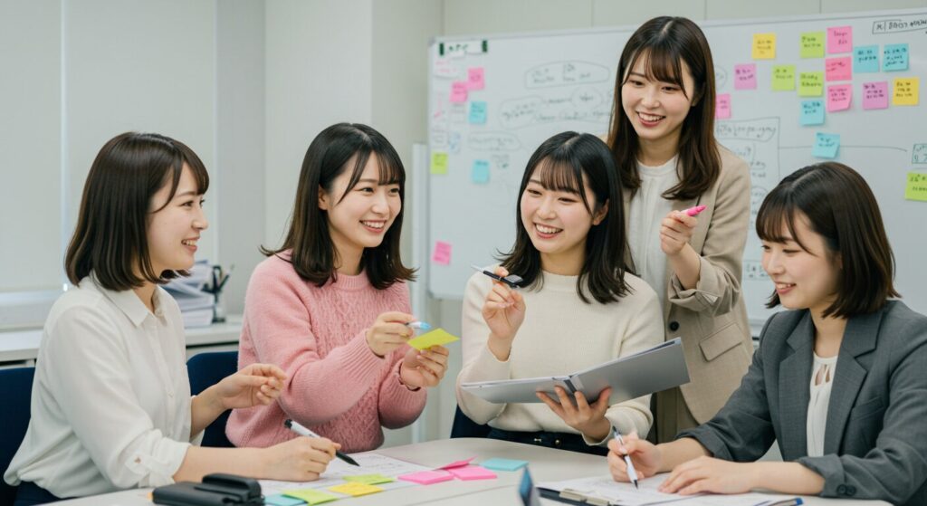 - グループワークやケーススタディで、実際のビジネス課題を題材に演習します。